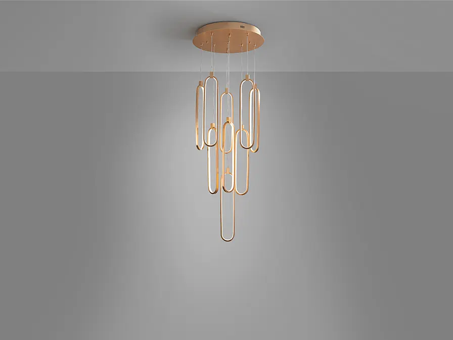 d 50 x H 80 / 220 cm max 117W LED 5.800 lumen / 3.000K szín: óarany színű lámpatest Falikapcsolóval fényerőszabályozható