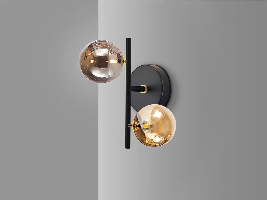 L 28 x H 36 x P 18 cm max 2 x G9 / 230V szín: fekete színű lámpatest, füst és pezsgő színű üvegbúra 4W G9 fényforrás a termékhez csomagolva