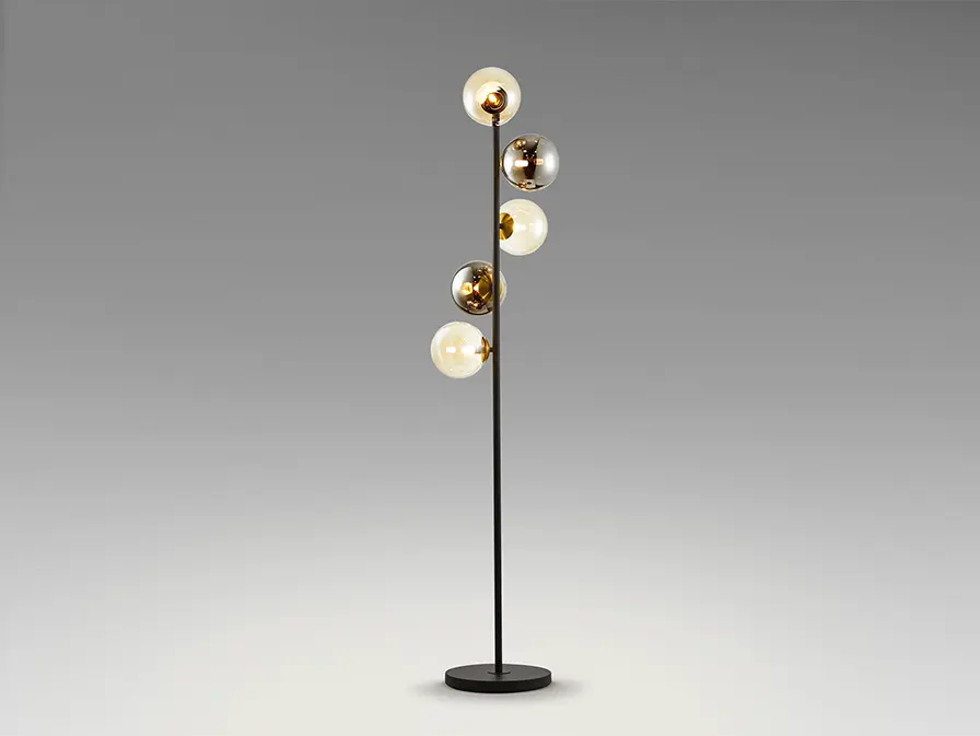 d 34 x H 159 cm max 5 x G9 / 230V szín: fekete színű lámpatest, pezsgő és füst színű üvegbúra 4W G9 a termékhez csomagolva